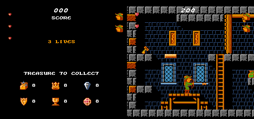 El juego es un típico plataformas de NES donde se deben evitar los dardos envenenados, lanzados por arañas y guardias: el contacto con estos drenará energía. Partes con una energía vital del 99%, del mismo modo una caída reducirá tu vida. Podrás recoger potenciadores y tabletas de salud. Los corazones deben ser recogidos en cada una de las pantallas. Parenvuelto en el periplo de ir en la recerca de muchas llaves para poder abrir fuertes puertas elladas y activar un complejo sistema de elevadores medievales.